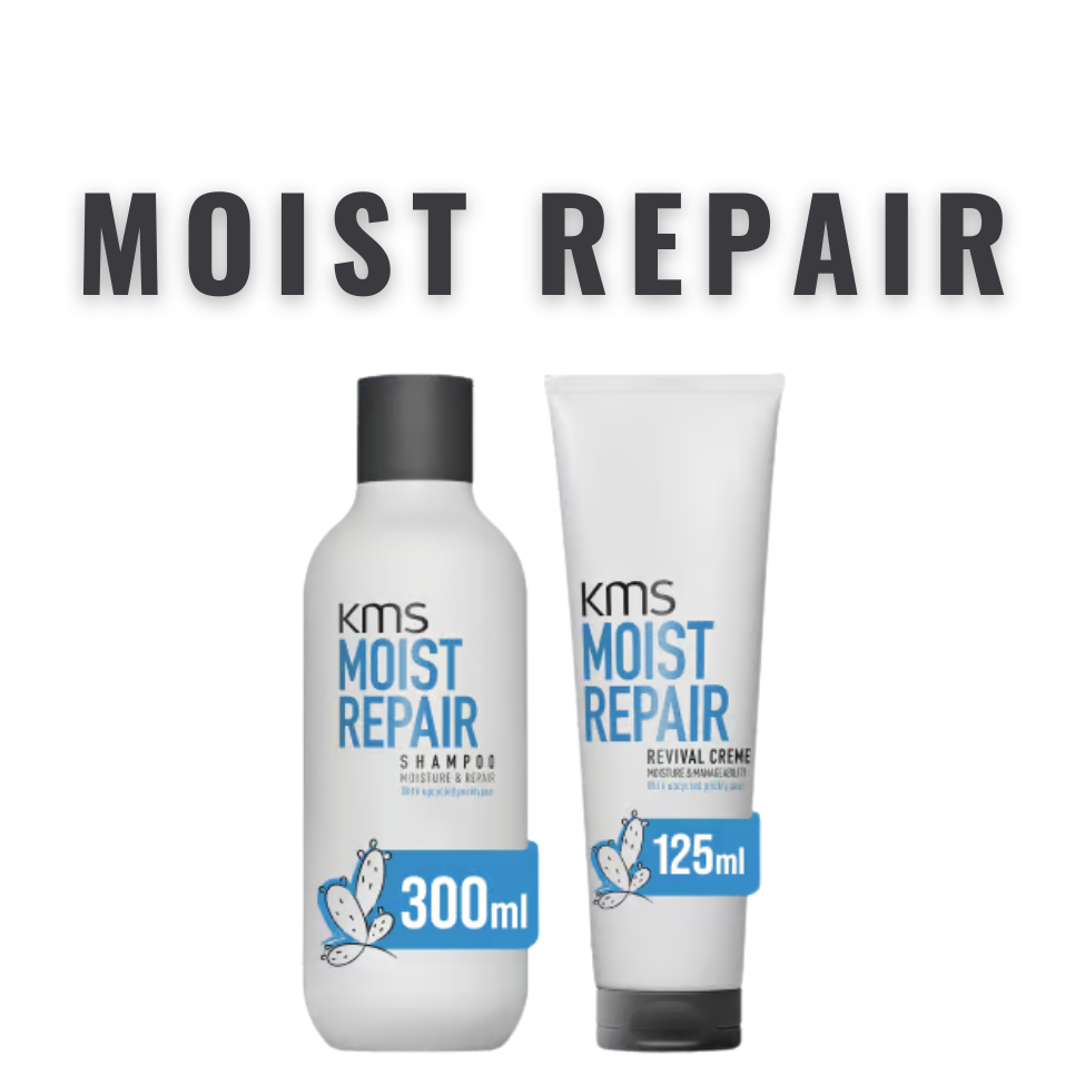 KMS Moist Repair versorgt trockenes und strapaziertes Haar intensiv mit Feuchtigkeit und stärkt die Haarstruktur von innen heraus. Die Serie repariert Haarschäden, verbessert die Elastizität und sorgt für spürbar geschmeidigeres, gesünder aussehendes Haar.